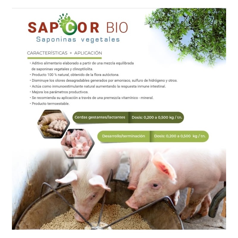 El manejo de los purines en granja recibe cada vez más atención. Es un punto en común del bienestar animal y la economía circular. El producto SapCor Bio contempla una solución natural para reducir los olores, atenuar el impacto de la concentración de amoníaco y mejorar al mismo tiempo los parámetros productivos. SapCor Bio contiene una fuente importante de saponinas triterpénicas, extraídas de la molienda de espina corona (Gleditsia amorphoides). Cuando se agregan a la dieta, las saponinas pasan a través del tracto digestivo sin ser absorbidas y se excretan en las heces. En la excreta, los componentes de la espina corona se unen al amoníaco y evitan que se liberen al aire. Los beneficios de las saponinas son numerosos y actúan sobre los parámetros fisiológicos de la digestión.